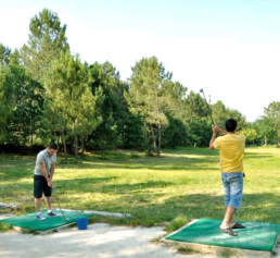La práctica deportiva se hace en espacios como el campo de golf rústico de Silleda o en otros lugares cubiertos previa reserva.