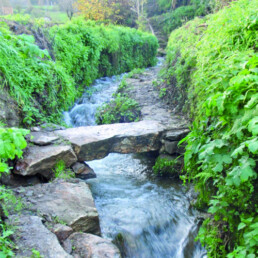 En el lugar en el que lleva sus aguas al río Iso a Ponte Santa nace la Ruta de a Fervenza das Hortas.
